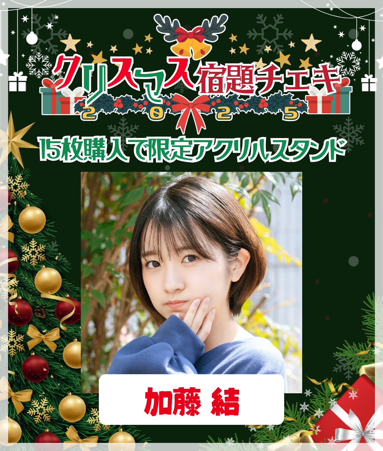 11/5 12:00販売開始 数量限定【加藤結/15枚購入でアクリルスタンド】 クリスマス宿題チェキ2025【ZR0540】