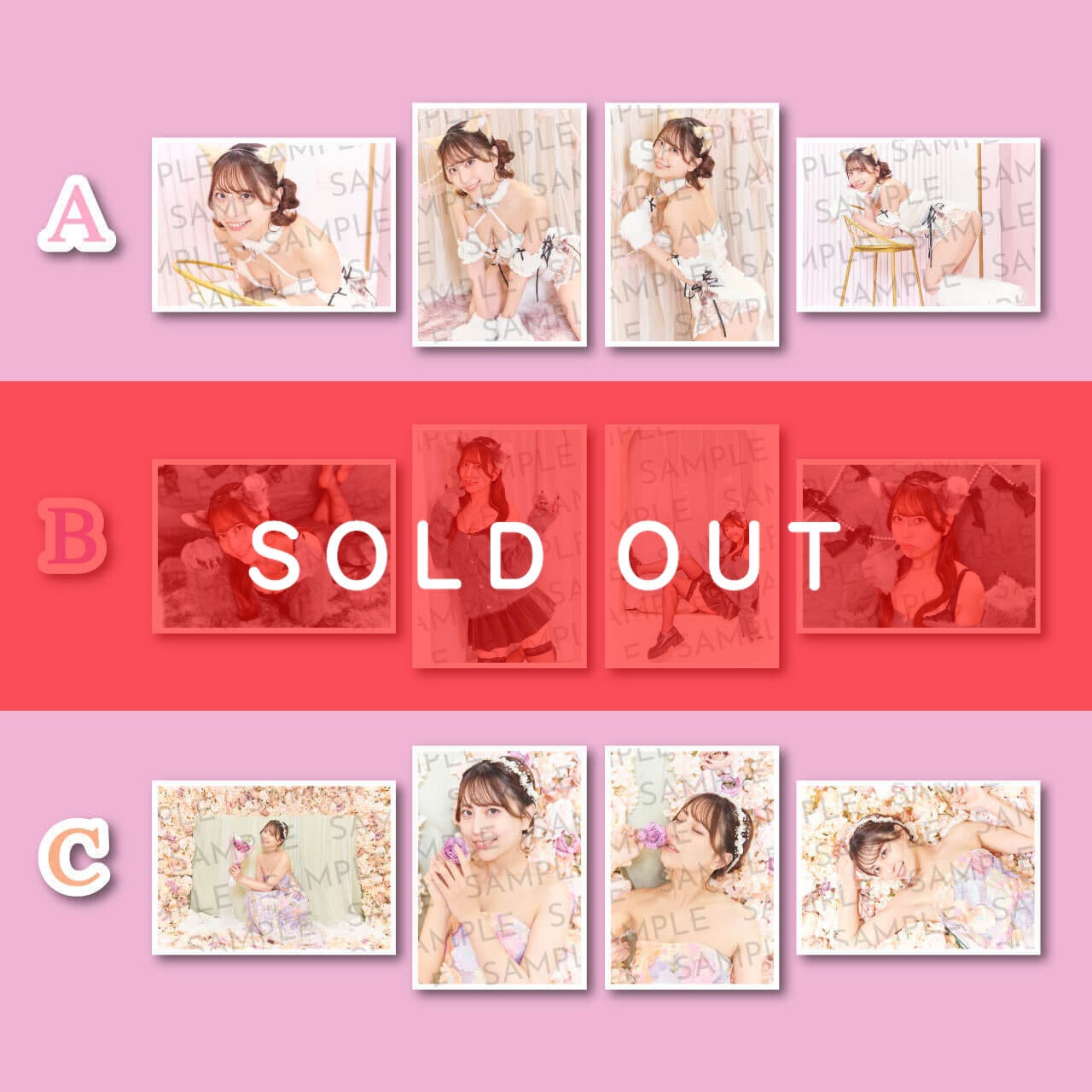 ・A×1セット B×1セット C×1セットご購入 →【2L版】ブロマイド(サイン入り)を3種1セット