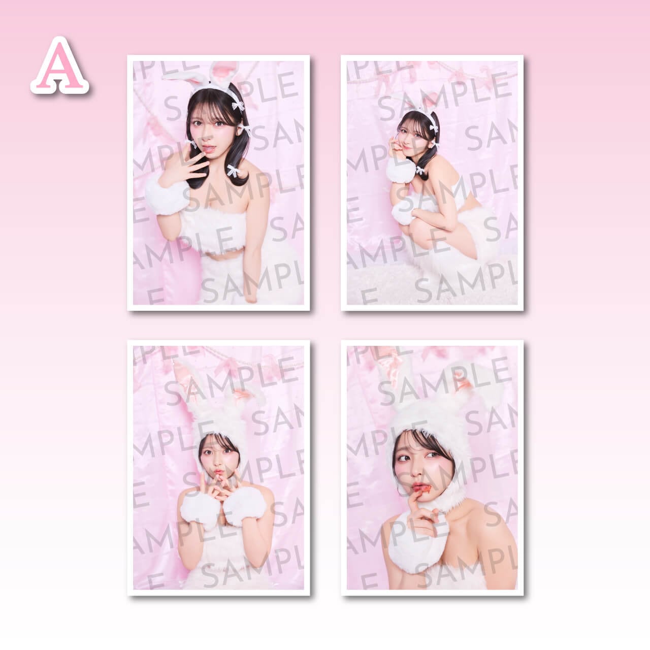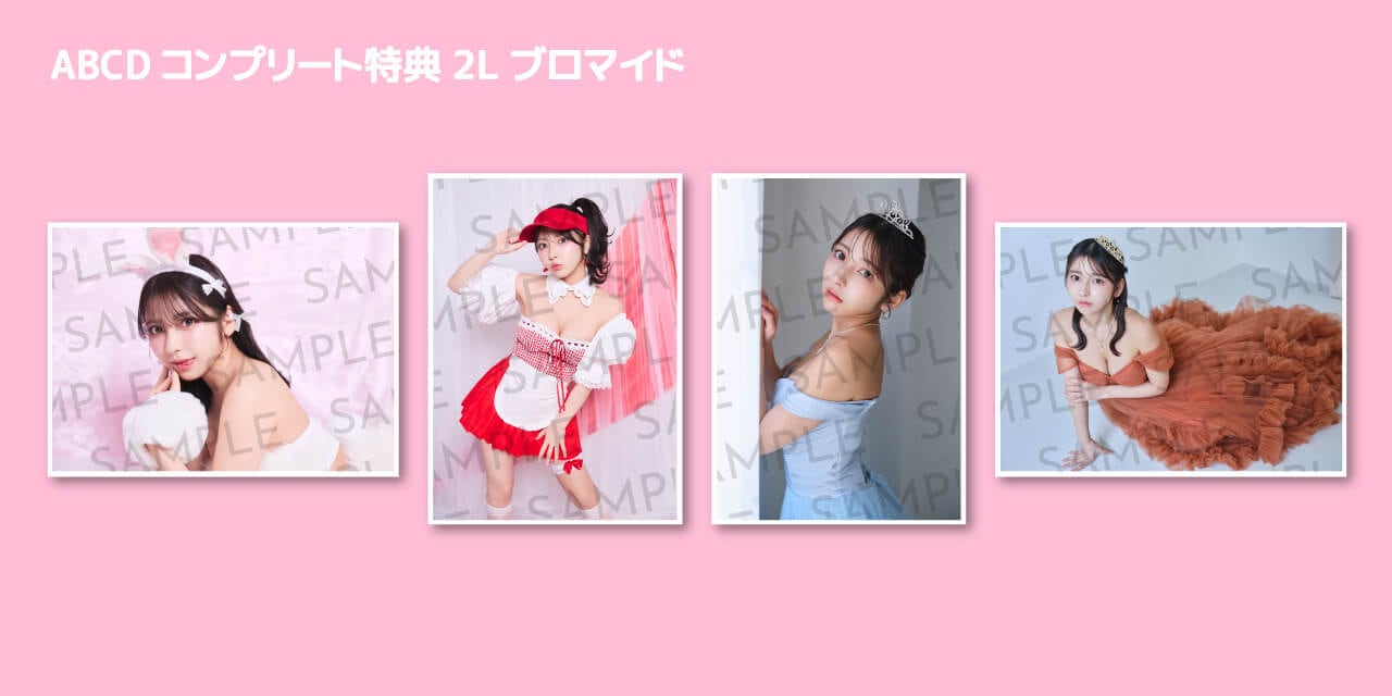 1会計(1注文)でA,B,C,Dをコンプリート(各1セットずつ購入)して頂いた方にコンプリート特典として【2L版】ブロマイド(サイン入り)4種1セットをプレゼントいたします。