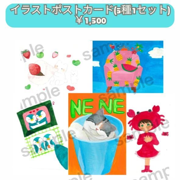 イラストポストカード(5種1セット)を販売いたします。